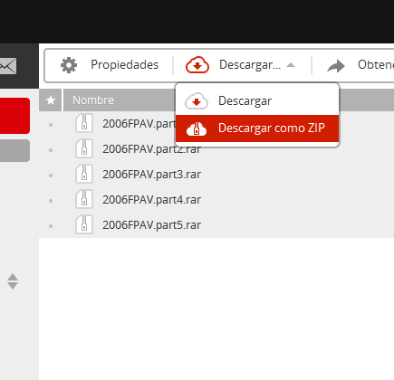 Los seleccionamos y le damos a Descargar o «Descargar como ZIP», la opción Descargar bajará de a un link ordenadamente y Descargar como ZIP bajará un archivo .zip entero conteniendo las partes seleccionadas.